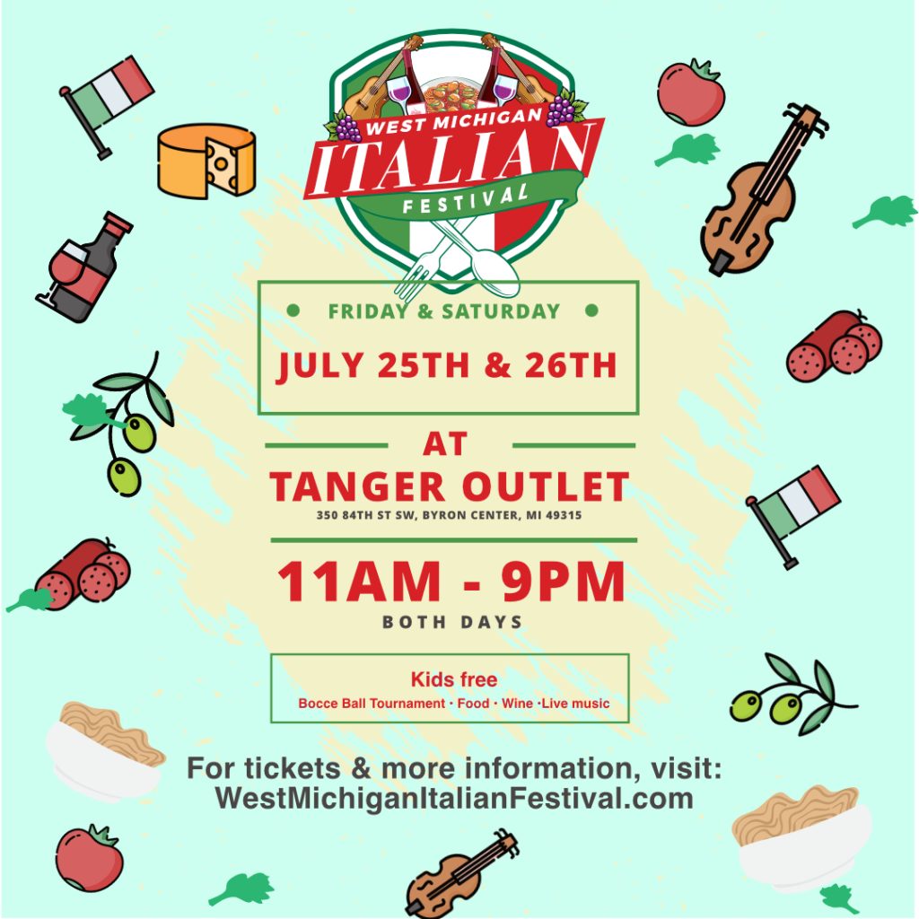 The sights, sounds, and tastes of Italy came alive once again at Festa Italiana West Michigan! Held July 25–26 at Tanger Outlets in Byron Center, the festival drew roughly 6,000 guests who came together to experience authentic Italian culture, food, music, and family fun. Grazie Mille!