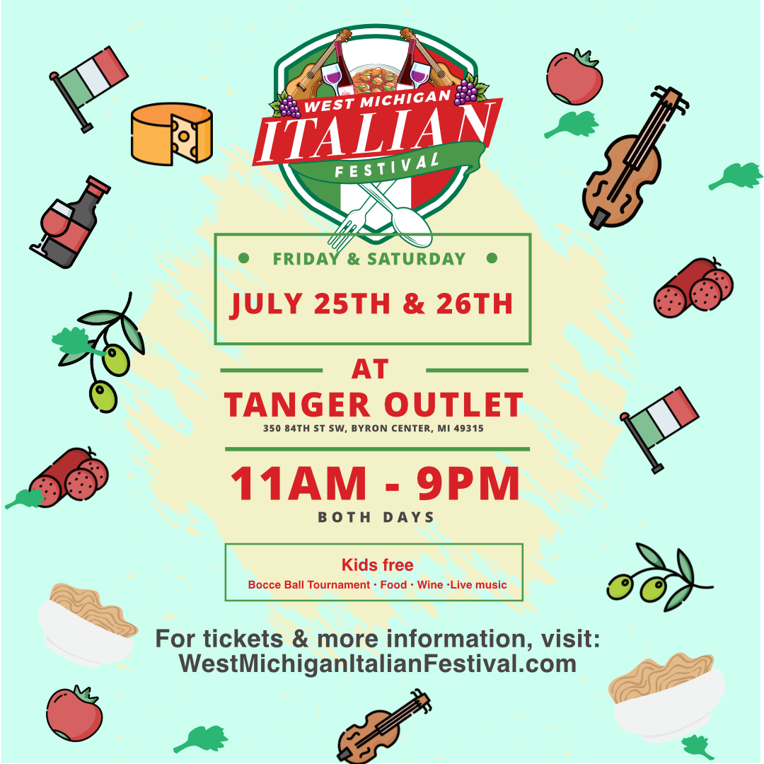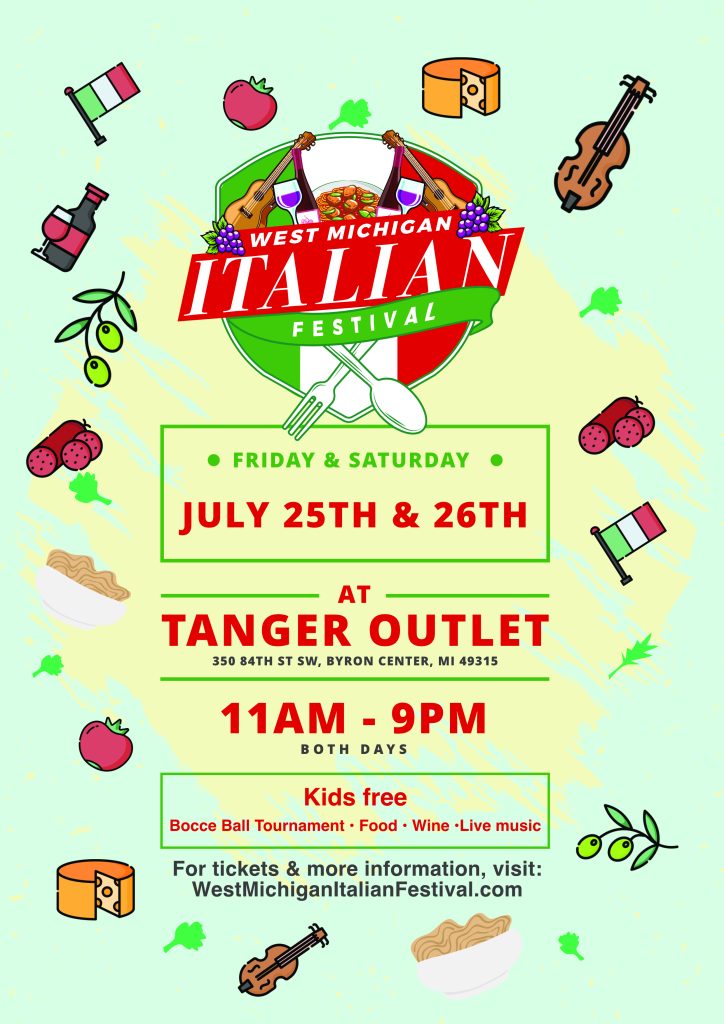Download official West Michigan Italian Festival assets by clicking each link below. Get logos, flyers, and promotional materials to help share the excitement of the festival!